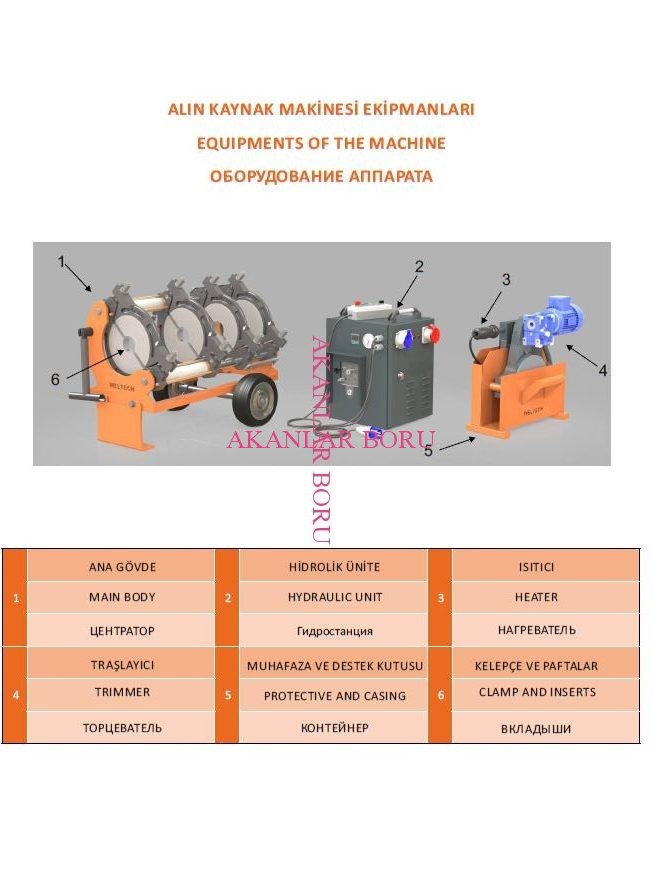 40-160mm YARI HİDROLİK ALIN KAYNAK MAKİNASI PARÇALARI: