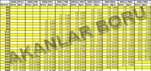 PE100 BORULAR İÇİN ÇAP-KESİT VE AĞIRLIKLAR TABLOSU: *Tablodaki değerler yaklaşık değerlerdir, üretici firmalara göre farklılıklar olabilir, Tablo yaklaşık fikir vermesi...
